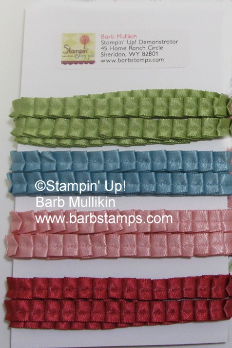 You will receive approx 2.5 yards of this ribbon in these colors – Baja Breeze, Pear Pizzazz, Riding Hood Red and Blushing Bride.