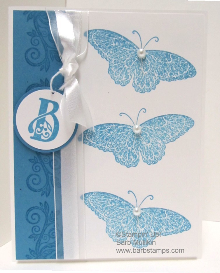 This is one of the cards we will be making tonight in my Monthly Card Class. I used Marina Mist on this card along with the Broadsheet Alphabet set.