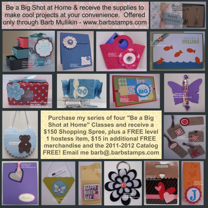 How would you like to receive a shopping spree for $150 to purchase a Big Shot Machine and/or dies or anything else you need? Well, you can when you participate in my series of "Be a Big Shot at Home" Classes.