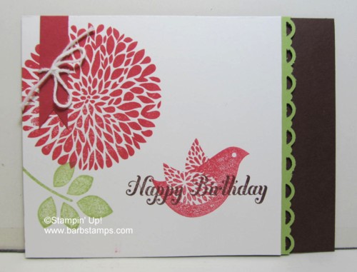 Another card using Betsy's Blossoms. Pretty straight forward stamping and the Scallop Trim Border Punch was used on the strip of Certainly Celery.