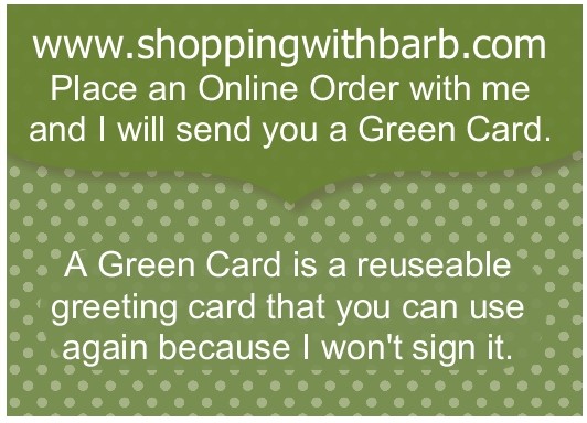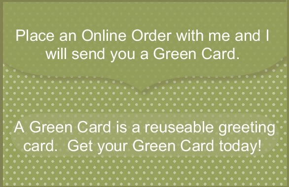 Place your orders in my ONLINE STORE and receive your Green Card from me. I mail a card to everyone who places online orders with me. Green doesn't mean the color of the card, it means you can reuse it!