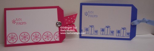 These use images from the Punch Pals set, the colors are Ballet Blue and Melon Mambo. We also used the Tag Corner Punch.