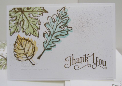 Oooo, Barb!! LOVE how you layered the sentiments on that first card!! And I am a sucker for anything fall, so your fall thank you cards are wonderful!! I need to pull out my color spritzer!! 🙂