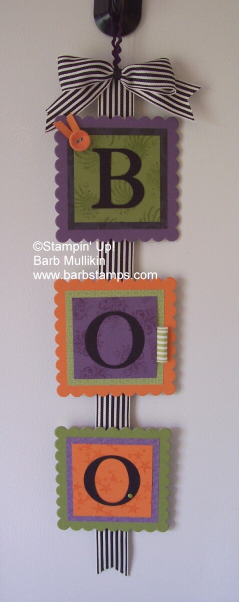You will receive all the materials to make this chipboard Halloween wall hanging including the Scalloped chipboard pieces, Scalloped card stock pieces, Designer Series Papers (will vary by kit), die cut letters, the ribbons, Orchard Ribbon Originals Ric Rac, safety pin and embellishments. You will receive either a Corduroy Pumpkin Pie button or brad or a Vanilla Hodgepodge Hardware Brad for the embellishment on the "B" section. The instructions will be emailed to you and will include a "how to" on making this super quick bow.