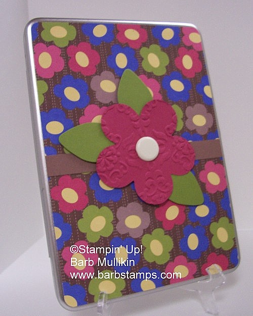 Join me for Stamp Camp!! Thursday, June 24th from 10-1 or 6-9. We will be making three projects including this personalized notepad holder with matching pen and bookmark. You choose your Designer Series Paper and card stock colors from my stash. This makes a wonderful gift or a fun conversation piece for you. After you use the notebook, you can use the tin for storage or as a small clutch. 🙂 Call or email me to register.