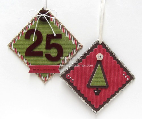 Love the ribbon thread thru the punch…great idea! The ornaments are SO beautiful, too! Missed you at Convention!