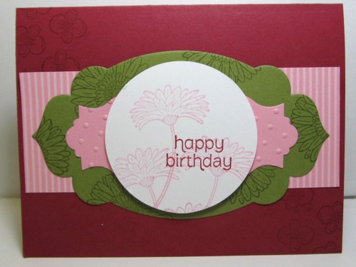 I used three of the images in the Reason to Smile set for this card. Notice the Pretty in Pink die cut behind the circle. That was done by cutting one of the Apothecary Accents Framelits in half to "extend" the length of it.