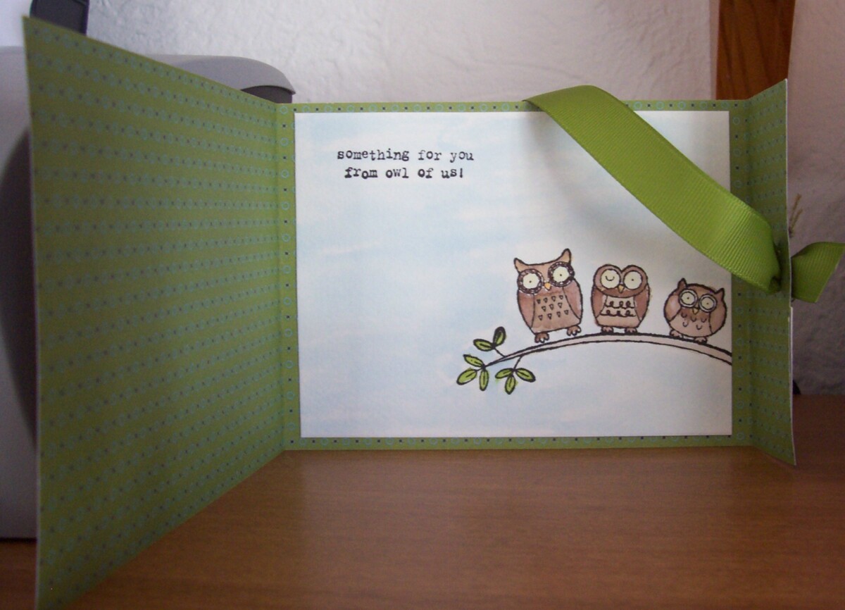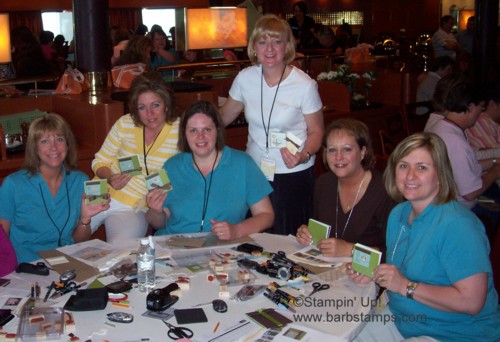 Owl Together Now was the FREE stamp set we received on the SU cruise to Bermuda a couple of years ago. Here we are making our projects with it. It was alot of fun stamping with my girlfriends in the middle of the ocean!!