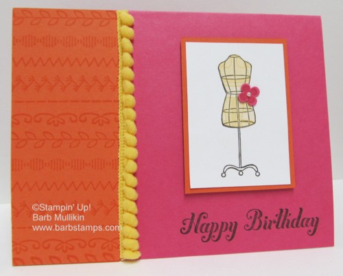 I live the Pompom Trim on this, it is available in three colors, Melon mambo 123322, Tangerine Tango 123323 and Daffofil delight 121885