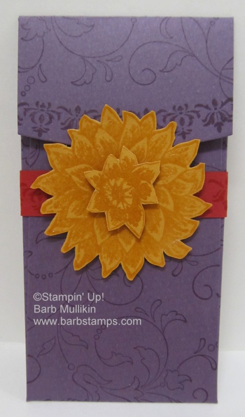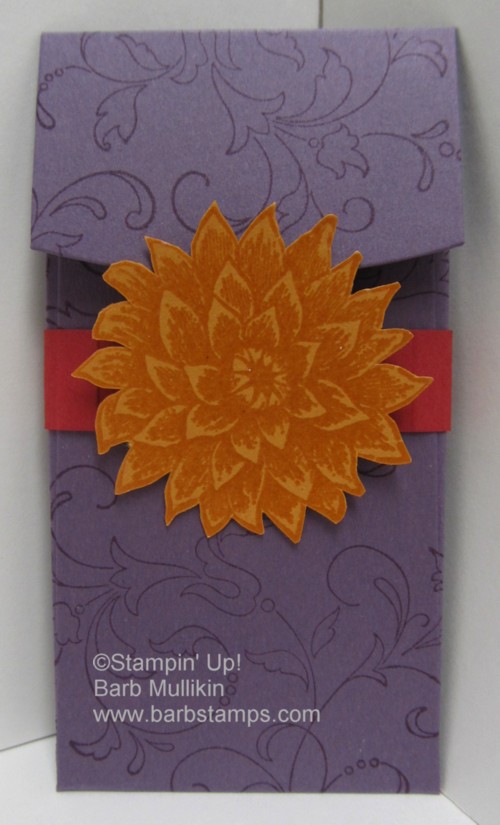 The pocket is Perfect Plum and I stamped the images randomly with Perfect Plum ink.