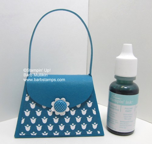 This purse is made using Island Indigo card stock and has a panel on the front using another pattern from the Summer Smooches DSP pack. I have a mini photo tutorial showing you how I created the panel.