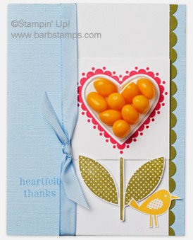 Just in time for Valentine's Day, our new Heart Treat Cups coordinate perfectly with the Sweetheart stamp set and the Full Heart punch. While the new Heart Treat Cups are ideal for Valentine's Day, they are also perfect for many other occasions including Mother's Day, wedding and bridal shower favors, anniversary cards, or just simple projects that show you care.