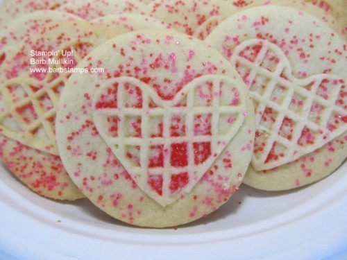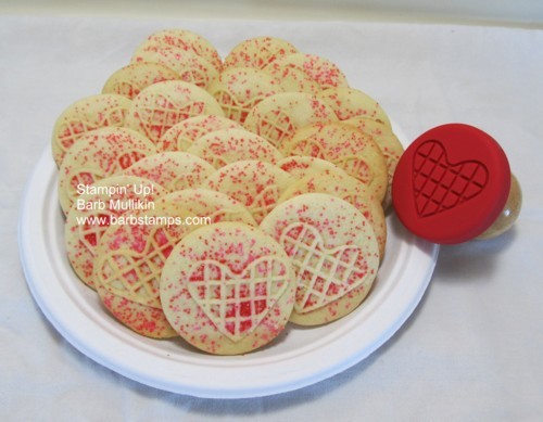 Here is my batch of Valentine Sugar Cookies! I used my Holiday Collection of Sweet Pressed Cookie Stamps.