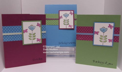 Sweetsummertrio This was one of the make & take projects in my workshops in February.  We are practicing our watercoloring skills on this one. :-)  I made the card using three colors and the gals could choose which one they made.